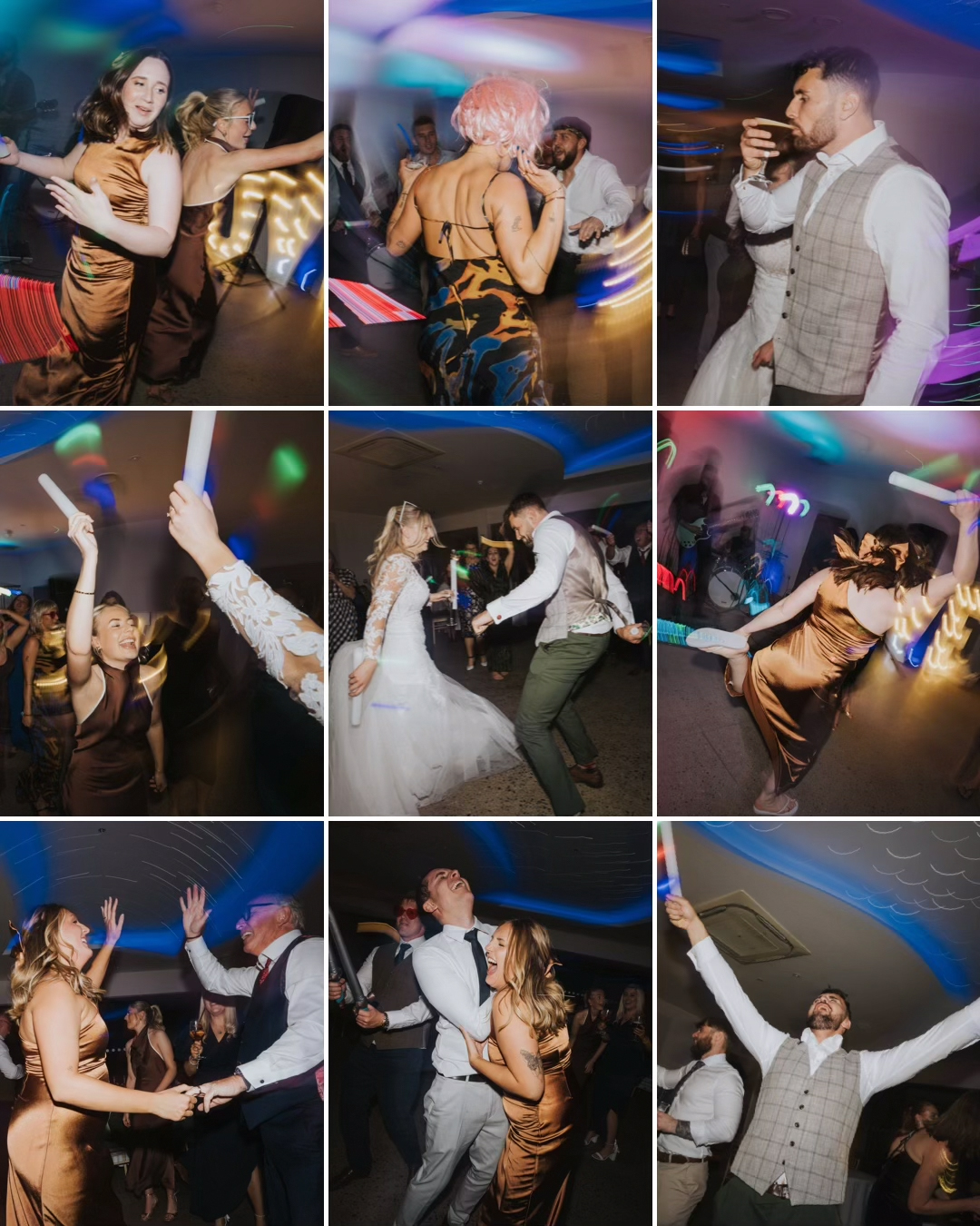 Just before last light, my dad and their wonderful content creator @kapturedbykatharine drove the couple down to Mermaids Cove for a few couple portraits, before heading back to the venue. The indie band began playing and by the second song in, ties were already on heads and the dancefloor was alight with people busting shapes.
