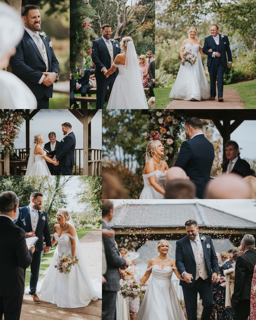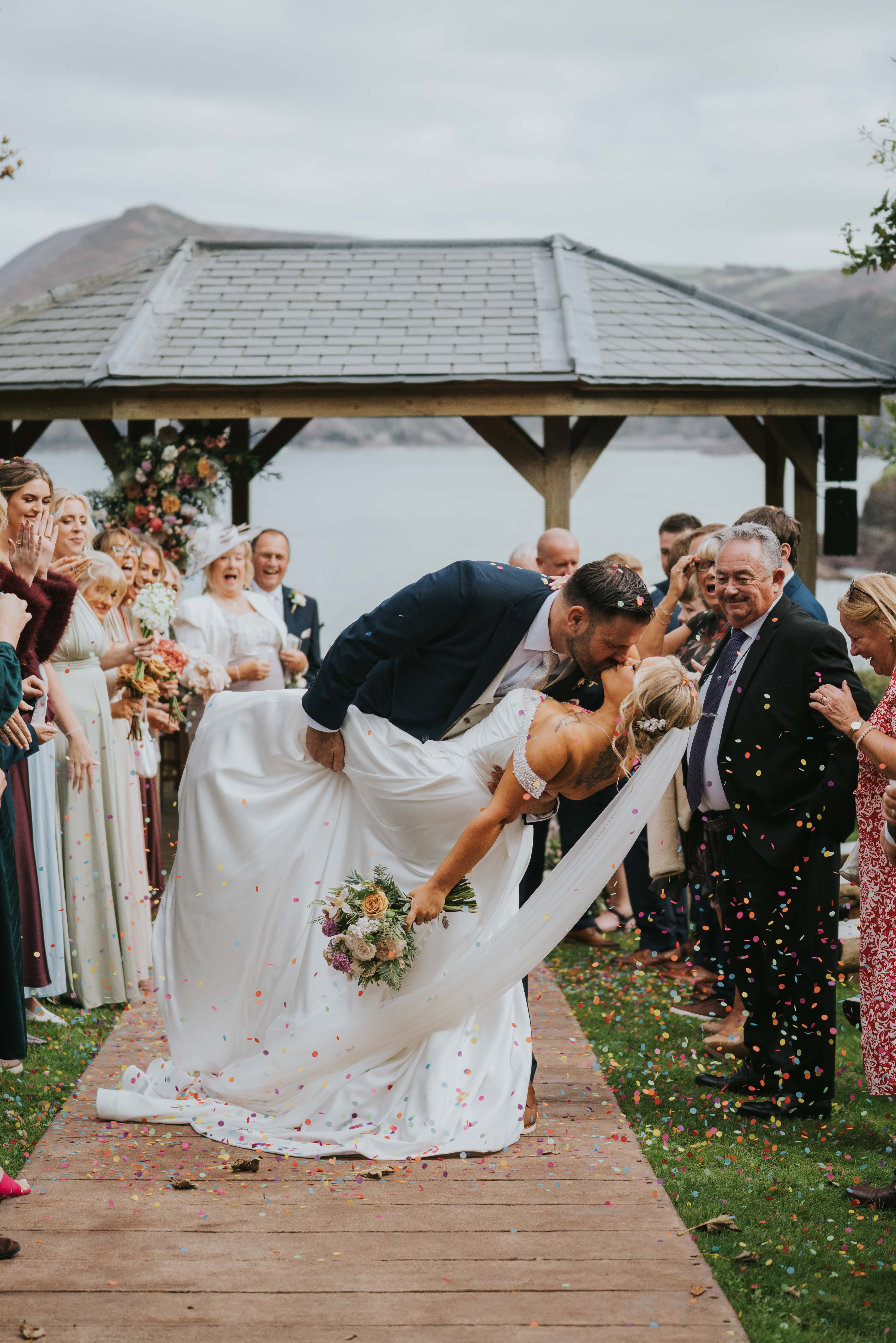Venue: @watermouthcoveweddings | Photographer: @graceelizphoto | Videographer: @outlandfilmsweddings | Flowers: @sweetwilliamsflowers | Cardigan: @threadsoflovex | Makeup: @sophiewhitemua @kayleigh.b.makeup | Hair: @clairehartleystylist @cindybeddard_bridalhair | DJ: @theweddingspinnerdjservices | Singing waiters: @theswingingwaiters | Saxophone: @dc__sax | Illustrator: @clairdeluneillustrate | Dress: @vickisbride | Cake: @bakedbyella__ | Photobooth: @margotcamper